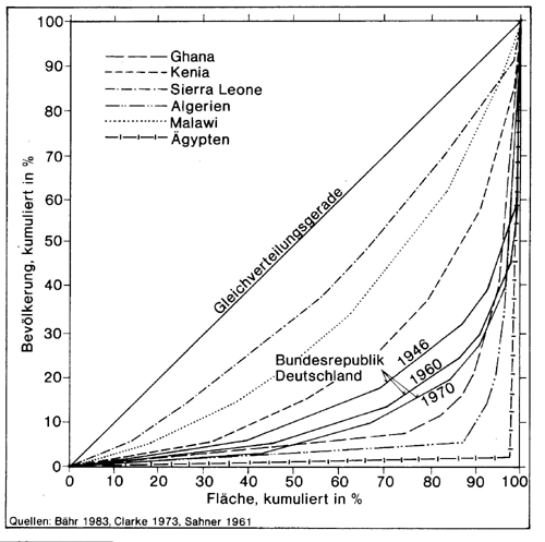 Lorenz-Kozentrationskurve für ausgewählte Staaten