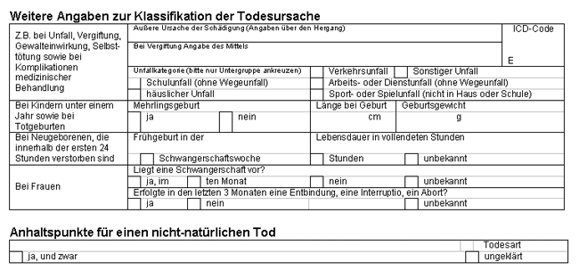 Ausschnitt aus dem vertraulichen Teil einer Todesbescheinigung