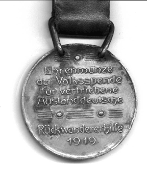 Ehrenmünze der Volksspende für vertriebene Auslanddeutsche (Vorder- und Rückansicht)