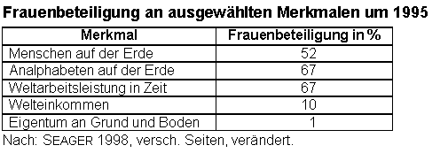 Hinsichtlich der ökonomischen Differenzierung der Bevölkerung ist es hier nochmals notwendig, über die Stellung der Frauen in der Gesellschaft zu sprechen, denn alle mit Qualifikation, Arbeit und Erwerbstätigkeit, Besitz und Einkommen sowie politischer Verantwortung in Zusammenhang stehende Fragen haben zusätzlich noch eine sexualspezifische Komponente. Diese wirkt sich unterschiedlich stark auf die Bevölkerungsentwicklung aus, was einerseits in der natürlichen Rolle der Frau im Prozess der Reproduktion begründet ist, andererseits aber insbesondere die allgemeinen rechtliche Ungleichheiten zwischen Mann und Frau in den verschiedenen Gesellschaften ausdrückt, wie am Beispiel der unterschiedlichen Beteiligung von Frauen zu sehen ist. In der regionalen Differenzierung verbergen sich dahinter noch weitere Ungleichheiten, Ungerechtigkeiten und sogar Rechtlosigkeiten. So ist die Lage der Frauen in den Entwicklungsländern deutlich von der in den Industriestaaten zu unterschieden, was zu einer Verschiebung der Beteiligung zu ungunsten der Frauen bei fast allen sozialen Koeffizienten führt, wobei die Merkmale in Tabelle (Frauenbeteiligung) besonders signifikant sein dürften. ![]() Eine spezifische Verknüpfung von wirtschaftlicher Tätigkeit und Altersstruktur der Bevölkerung ist über die Zeitspanne gegeben, in welcher Personen aus altersspezifischen Gründen an der Erwerbstätigkeit beteiligt sein können oder nicht. Im Bericht der OECD (Organization for Economic Cooperation and Development) von 1997 wird ausgesagt, dass in Zukunft in den meisten hochentwickelten Staaten die Zeitspanne, die ein Mensch ohne Erwerbsarbeit verbringt, länger sein wird als die Zeitspanne, während er einer Erwerbsarbeit nachgeht. In Deutschland betrug 1995 bei einer Lebenserwartung für Männer von 73 Jahren die mit Erwerbsarbeit verbrachte Zeit 36 Jahre, d. h. diese Periode ist durchschnittlich kürzer als die Lebenszeit ohne Erwerbsarbeit (37 Jahre). Die Gründe dafür liegen u. a. in der gestiegenen Lebenserwartung sowie der längeren Ausbildungszeit. Noch 1975 verbrachte ein männlicher Deutscher 42 mit und 27 ohne Erwerbsarbeit. (MÖCKLI 1999, S. 39) |